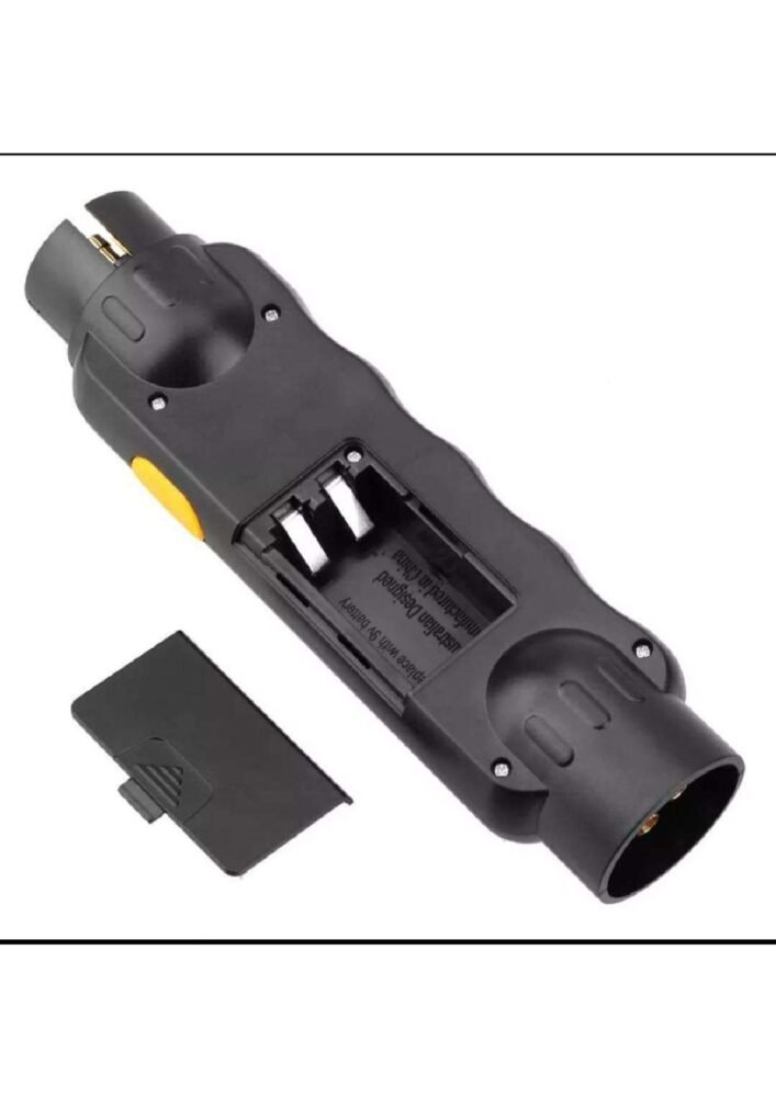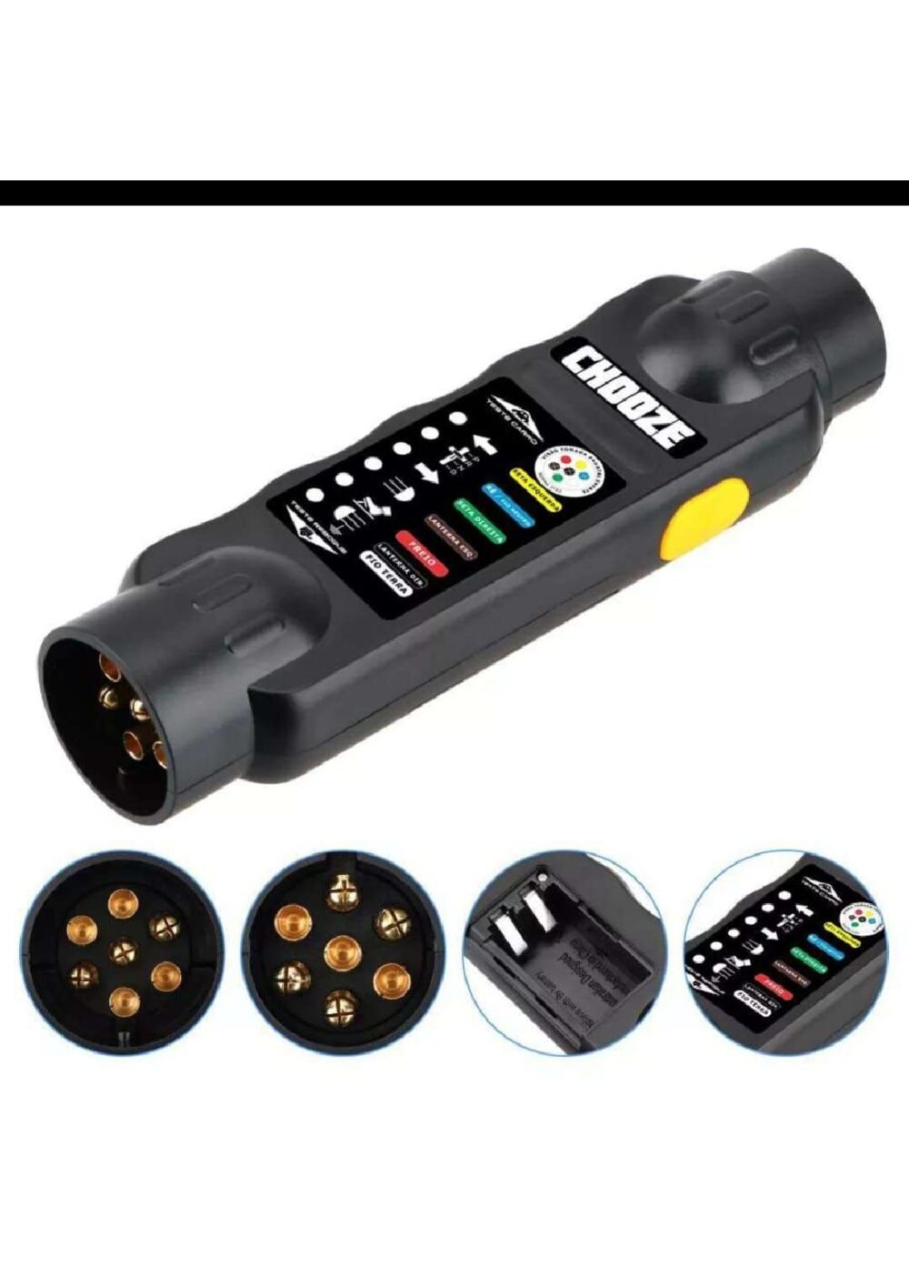 Verificador das conexões elétricas (7 pinos). Produto funcional para verificação quanto ao funcionamento das conexões elétricas do veículo, quando instalado sistema de engate (original, ou em forma de acessórios), conforme as normas de referência, trazendo mais agilidade nas verificações. Acompanha a bateria 9V.