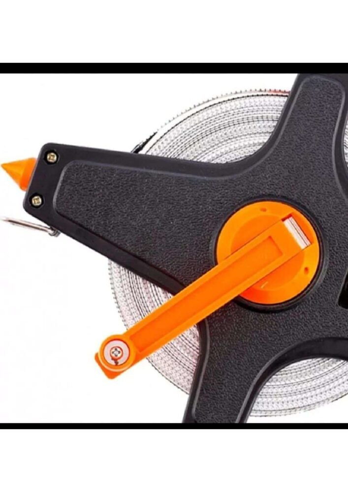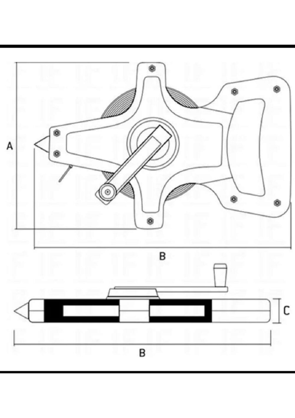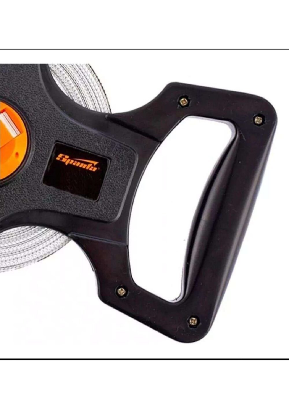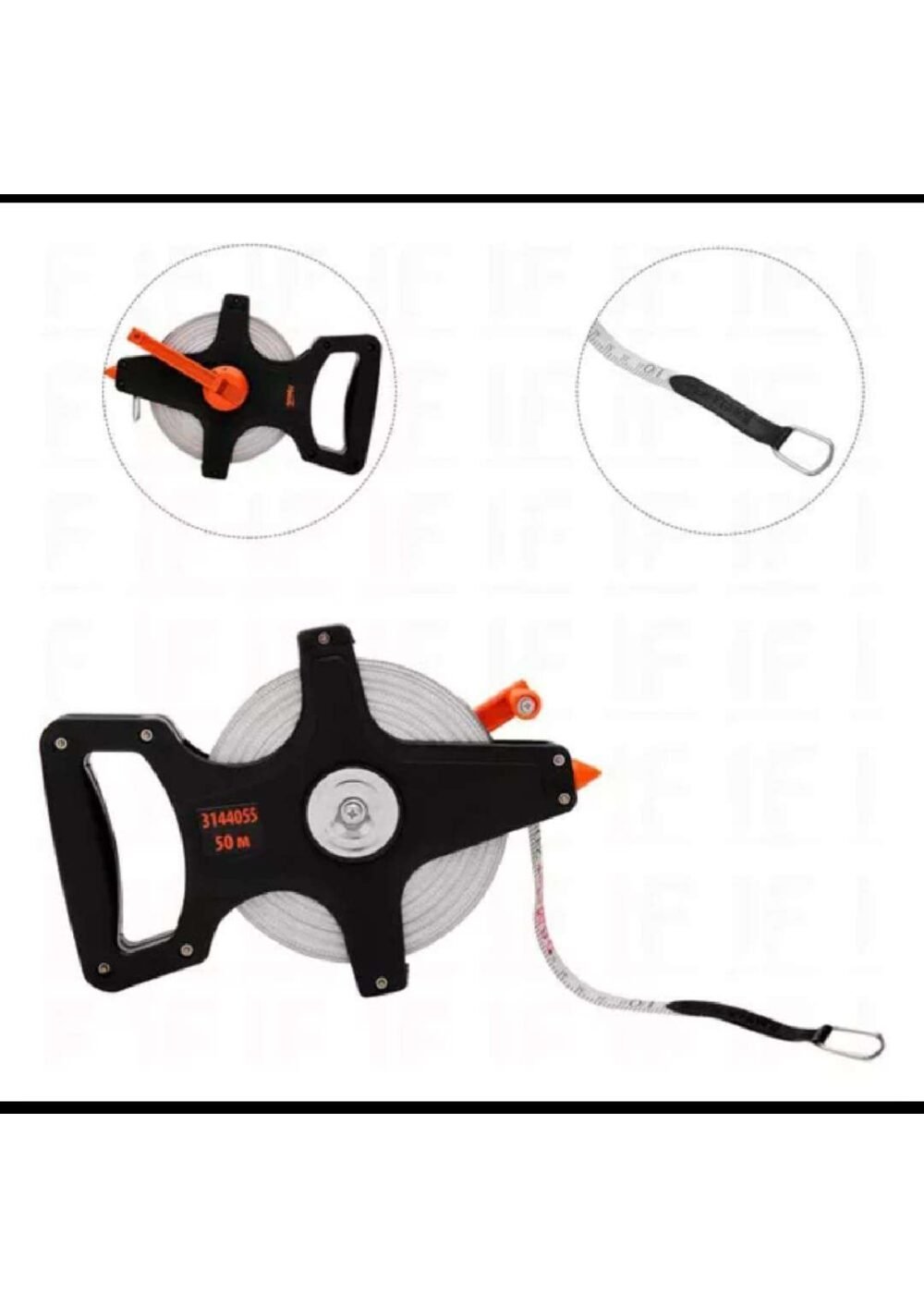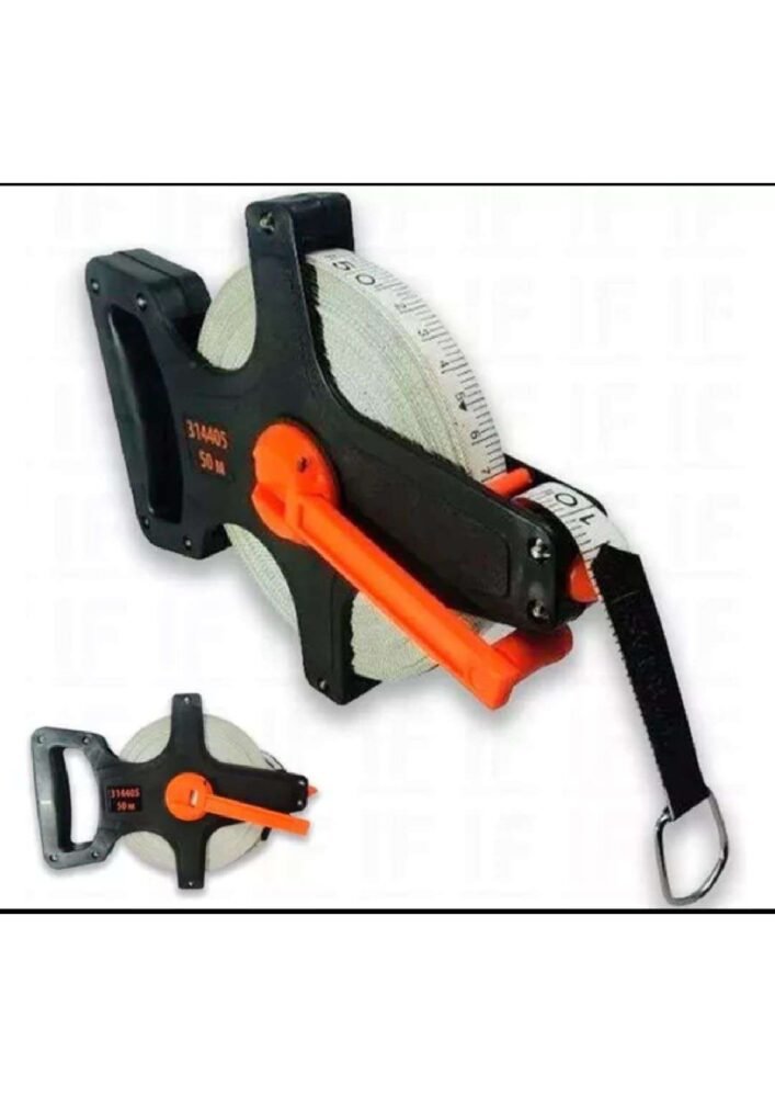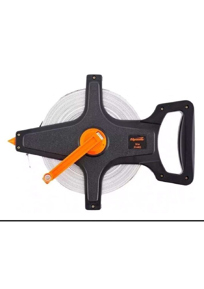 Trena longa em fibra com manivela (faixa de medição: 0M – 50M), com alça ergonômica garantindo maior precisão na medição; caixa em plástico aberta que armazena a fita e ajuda no processo de enrolar e desenrolar sem dificuldade. Acompanha certificado de calibração padrão RBC (Inmetro).
